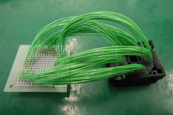 当社では、お客様の指示に基づき専用治具を用いてパターンカットやジャンパー線取り付けなどの改造を行います。その他特殊な改造内容についても、ご要望に応じて対応可能です。
