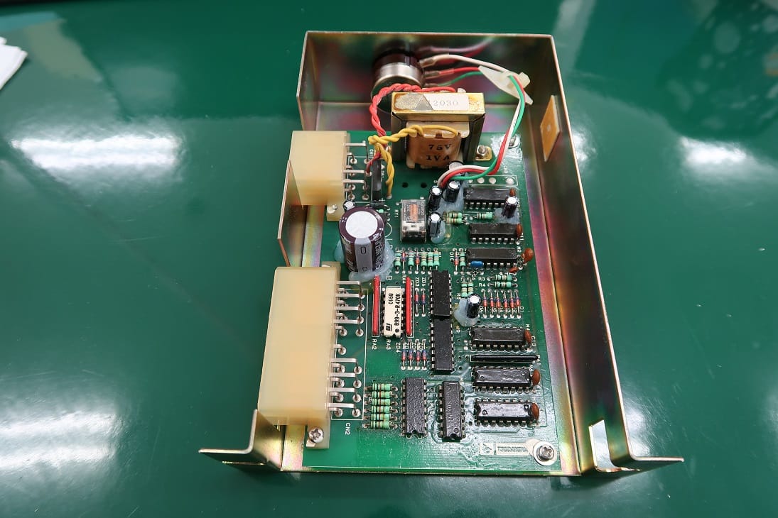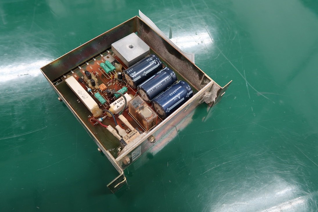 製造から20年以上経過している基板のために、消耗部品である電解コンデンサや基板の状態を隅々までチェックします。容量抜けの電解コンデンサが確認できたために、交換修理を実施しました。また、電解コンデンサは消耗部品のため、今後のトラブルを未然に回避するためにも、全ての電解コンデンサの変更をご提案しております。