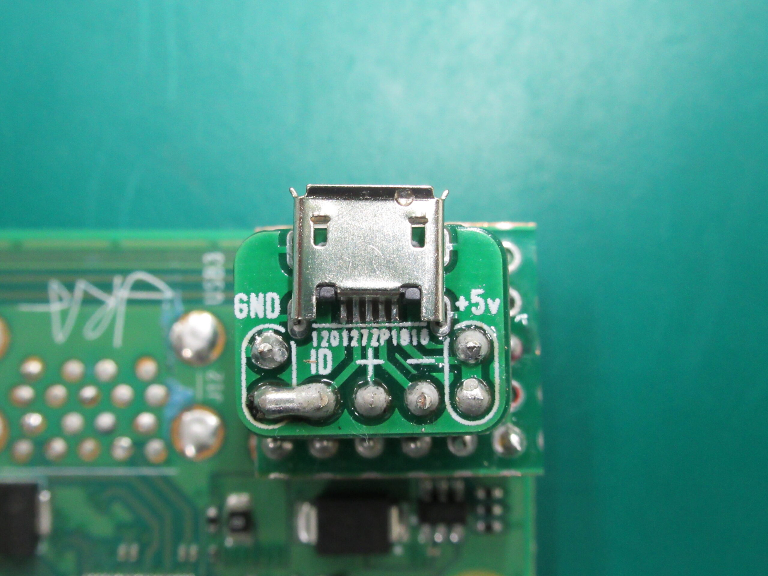 まずは、不要なコネクタの撤去から開始します。 ディスプレイ・GPIOピン・オーディオコネクタ・イーサネットコネクタを削除します。 限られたスペースの中に高密度に部品が実装されており、面実装の部品の撤去については細心の注意を払います。 多層基板でベタパターンが多く熱が逃げやすいために、はんだが溶けにくいのも、改造作業を困難にする要因になります。 実装部品を耐熱テープで保護しながら熱風ヒータ等で取り外します。 同時に、換装するためのコネクタの組み立ても行います。 今回は、汎用のコネクタ用基板とユニバーサル基板を使用しての自作基板で対応しました。