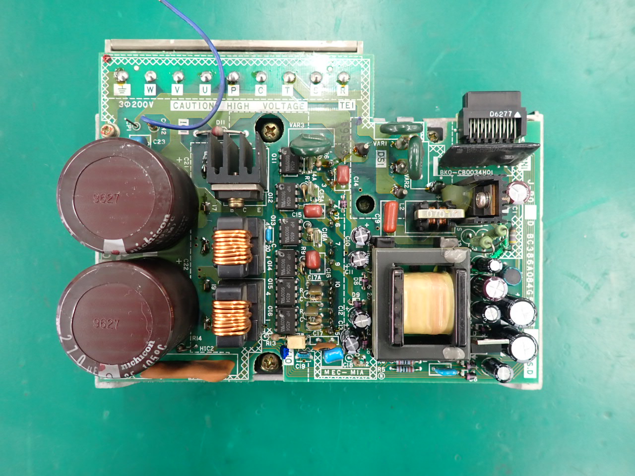 三菱電機製 サーボアンプの修理依頼をいただきました。 工作機に使用されているもので、サーボアンプ異常のアラームが発生し、工作機が動作しなくなったとのこと。 サーボアンプは、7セグの表示が消え動作していないとのことでした。 製造から20年以上経過しており、製造元はサービスを対応していません。 寿命部品は、既に寿命を迎えていますので、まずは、そこを疑いながら調査を進めます。
