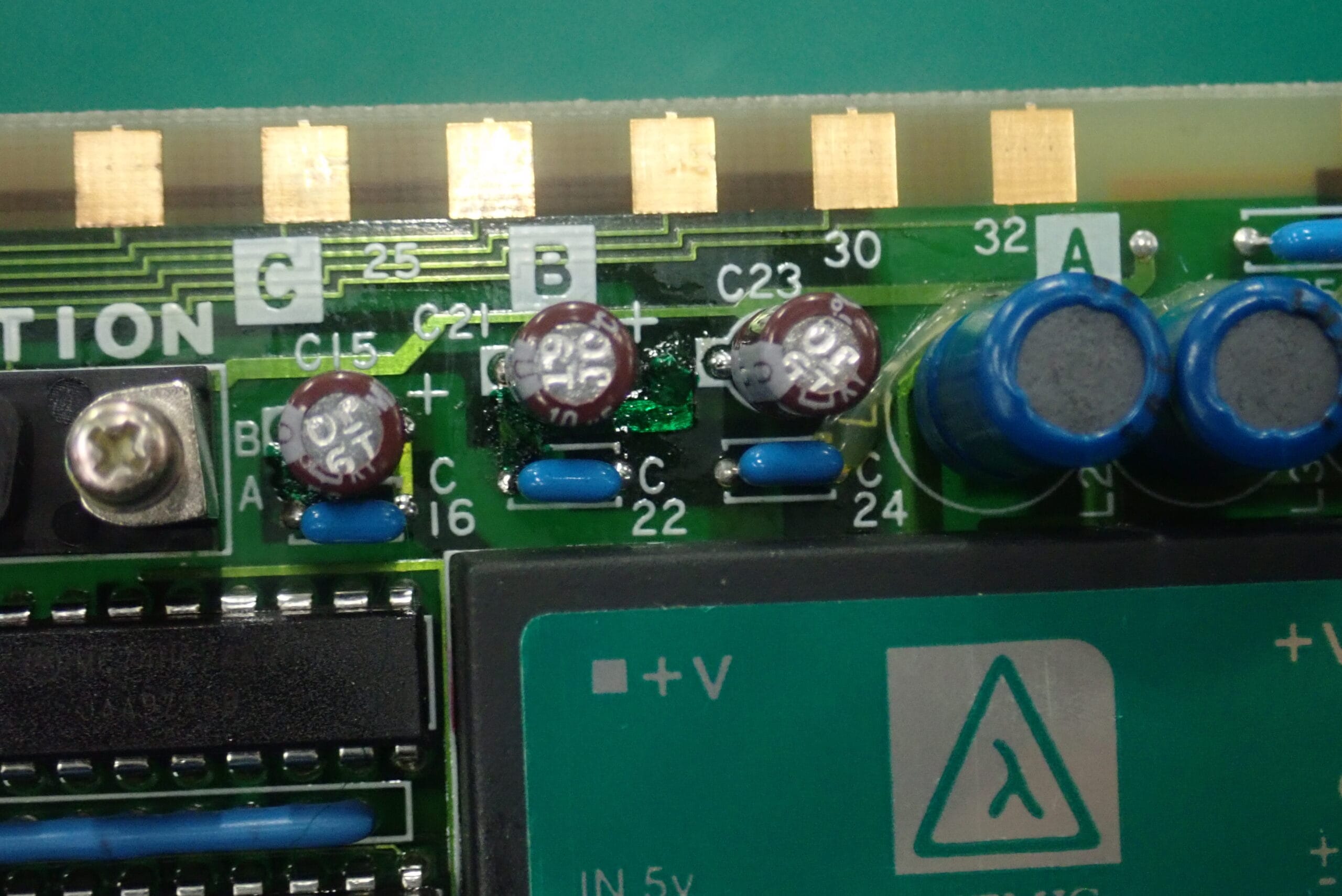 断線箇所を補修し、液漏れしていた電解コンデンサも新品に交換いたしました。
