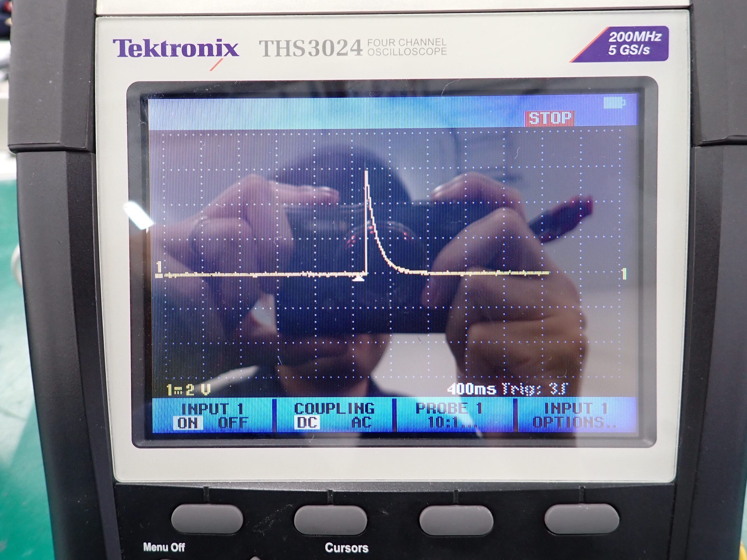 弊社にはAシリーズシーケンサの動作環境がありますので、通電し、実動作を見ながら波形をチェックしていきます。