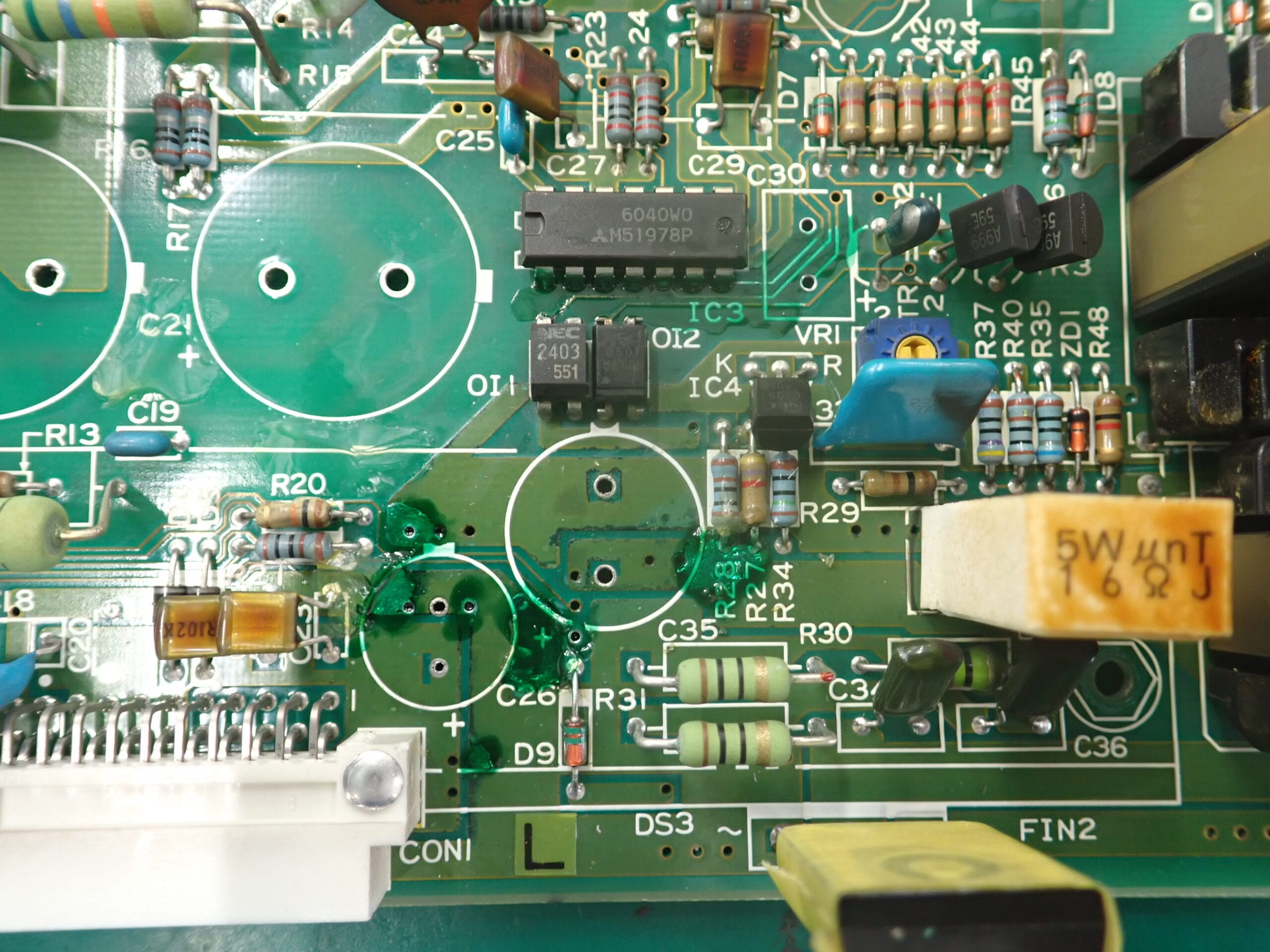 断線箇所を補修し、液漏れしていた電解コンデンサも新品に交換いたしました。
