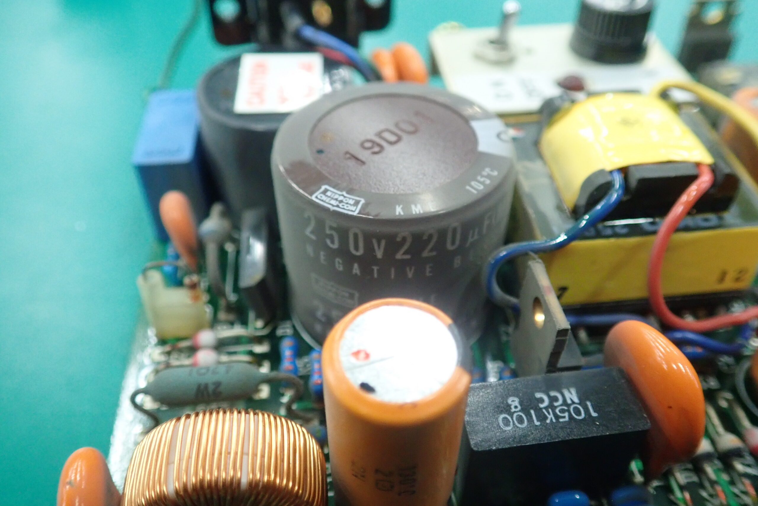 コンデンサだけでなく周辺の部品にも故障が無いか、テスターとオシロスコープを使って確認していきます。